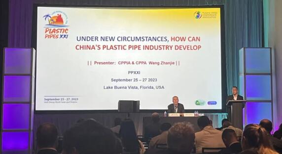2023年9月25-27日,由歐洲PE100+協(xié)會、美(měi)國塑料管道協(xié)會(PPI)、歐洲塑料(liào)管材管件協會(huì)(TEPPFA)和國際塑料(liào)管道會議(yì)協會(PPCA)主辦(bàn)的第二十一屆國際(jì)塑料管道會議在美國奧蘭多迪(dí)士尼世界海豚酒店舉辦。中國塑料加工工業協會理事(shì)長王占傑參加會議並發表了《UNDER NEW CIRCUMSTANCES, HOW CAN CHINA'S PLASTIC PIPE INDUSTRY DEVELOP》的主題演講。97视频集團(tuán)亦受邀參加(jiā),與來自世(shì)界28個國(guó)家,180家公司/機構,300餘位代表共同出(chū)席了會議。